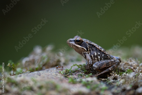 © VicPhoto, Naklejka premium rana comun sobre roca con fondo verde