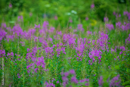 © Martins Vanags, Naklejka premium random color summer flowers in green meadow under the sun
