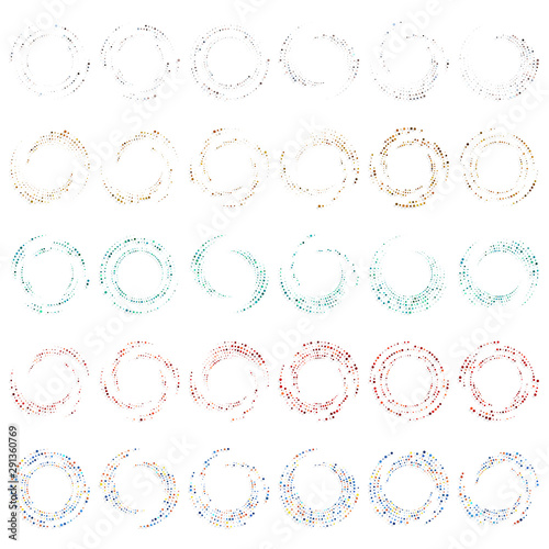 Obraz premium Random dotted, dots, halftone speckles concentric circle.Spiral, swirl, twirl...