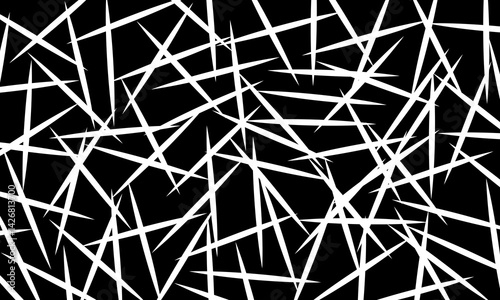 Fototapeta premium Random geometric white stick line pattern on black background. minimalistic...