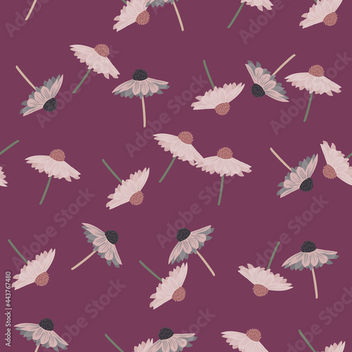 Fototapeta premium Random seamless pattern with doodle botany gerbera flowers ornament. Purple...