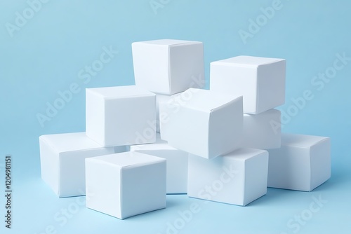 © MdRaselMahmud, Obraz premium Random shifted white cube boxes block background