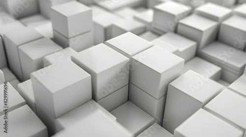 Obraz premium Random shifted white cube boxes block background wallpaper background....