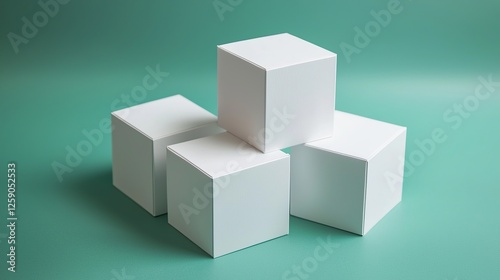 Fototapeta premium Random shifted white cube boxes block background wallpaper banner with copy...