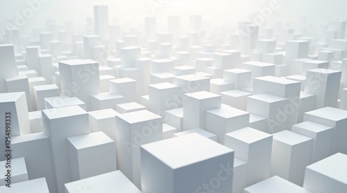 © extra, Fototapeta premium Random shifted white cube boxes block the background