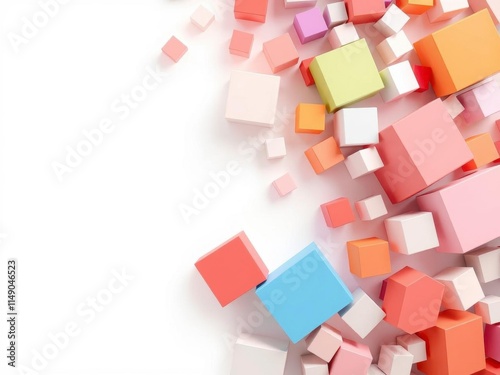 Obraz premium Randomly shifted white cube boxes create a modern and abstract background,...
