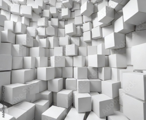 Fototapeta premium Randomly shifted white cube boxes fill the background , banner, white,...