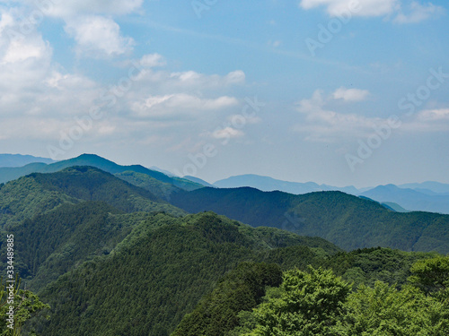 Naklejka premium Range of fresh green mountains in Japan