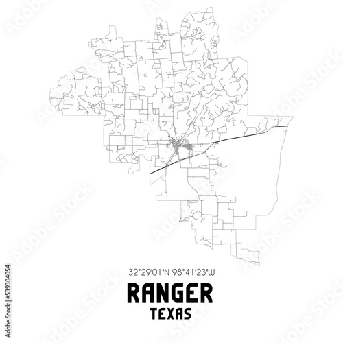 Obraz premium Ranger Texas. US street map with black and white lines.