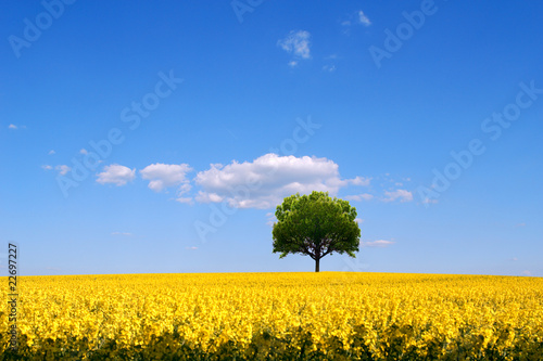 Obraz premium Rape seed field and lone tree landscape