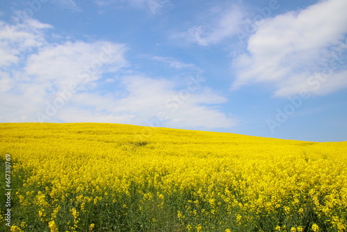 © tiger2506, Fototapeta premium Rapeseed field and a blue sky in May