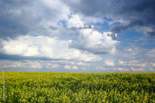 Fototapeta premium Rapeseed field and cumulus clouds