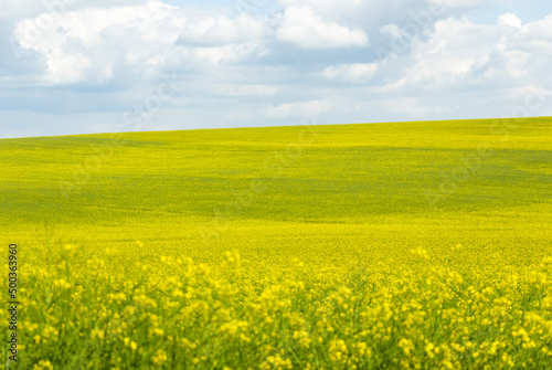 Fototapeta premium Rapeseed field in summer, rural Czech Republic