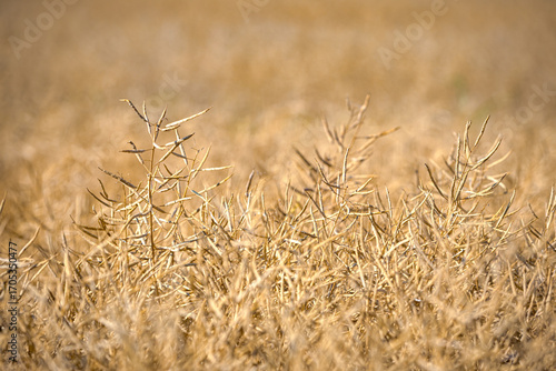 © Roman_23203, Fototapeta premium Rapeseed field, mature canola pods
