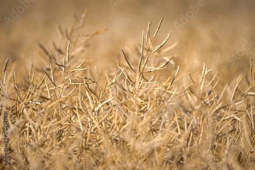 © Roman_23203, Fototapeta premium Rapeseed field, mature canola pods