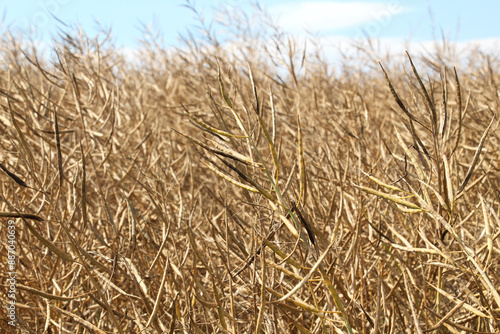 © orestligetka, Fototapeta premium Rapeseed pods ripen on the stems in the field.