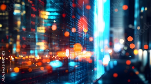 © Berkah, Obraz premium Rapid growth concept with blurred city abstract lights background.