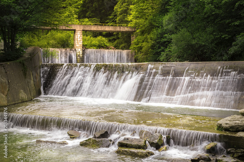© bymandesigns, Fototapeta premium Rapid mountain river in a succession of waterfalls