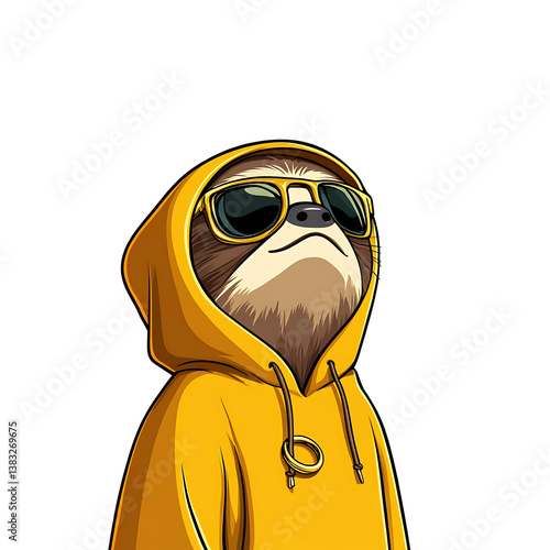 © Kavita, Fototapeta premium Rapping Sloth Wearing Hoodie and Gold Rings