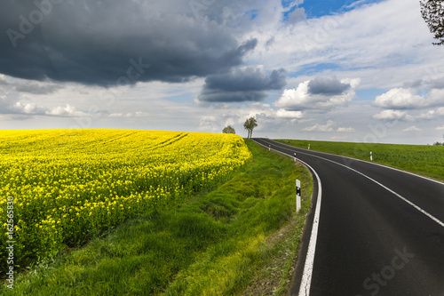 Obraz premium Rapsfeld an Landstrasse
