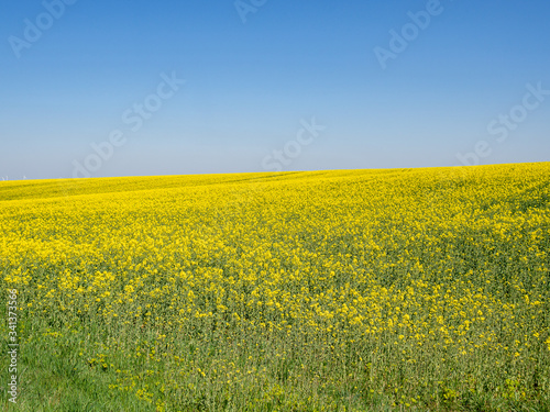 Fototapeta premium Rapsfeld blüht gelb im Frühling