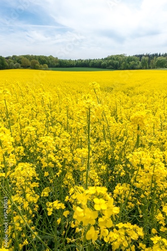 Obraz premium Rapsfeld in einer schönen Landschaft eingebettet