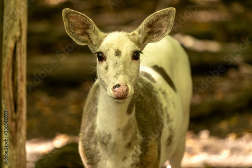 © Denny, Fototapeta premium Rare piebald white-tailed deer in conservation area