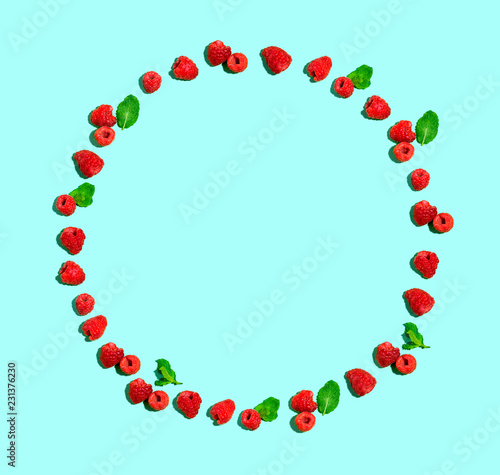 © Tierney, Obraz premium Raspberries and mints on a solid color background