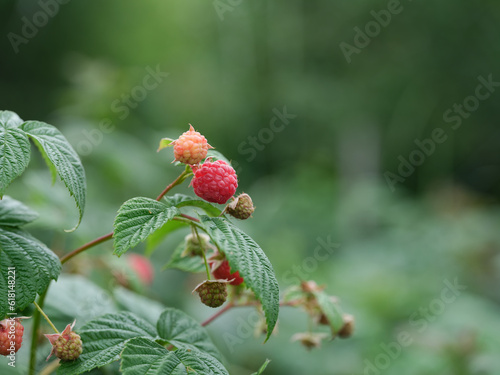 © Stepan Popov, Fototapeta premium Raspberries hanging on a raspberry bush branch