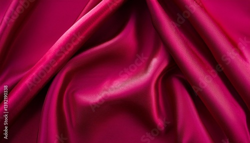 © l1gend, Obraz premium Raspberry red silk satin. Viva magenta. Color 2023. Draped fabric. Elegant background. Space for design. Flat lay