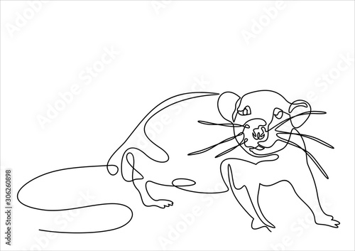 © nikvector, Obraz premium Rat continuous line.Rat year 2020.One single line drawing. 2020 year sign.
