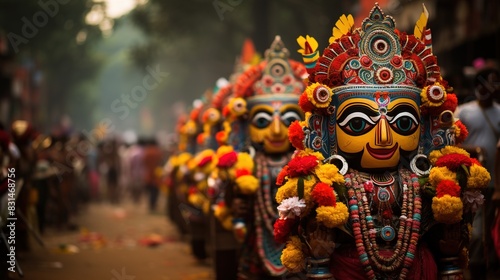 © Nitin, Fototapeta premium Ratha-yatra festival of Lord Jagannatha, Balabhadra and Subhadra during the annual Rathayatra in Odisha in the background