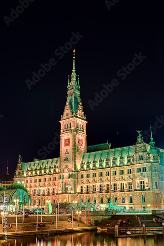 Fototapeta premium Rathaus in Hamburg bei Nacht