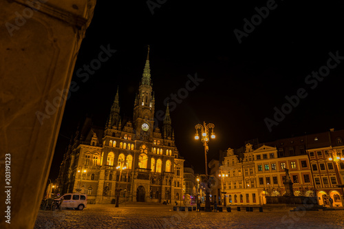 © paul kitawa, Fototapeta premium Rathaus Liberec bei Nacht