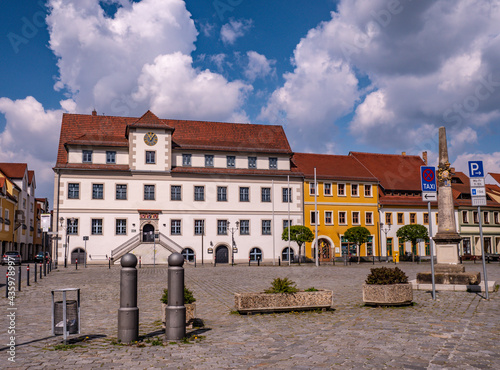 Fototapeta premium Rathaus mit Markt in Hoyerswerda in Sachsen