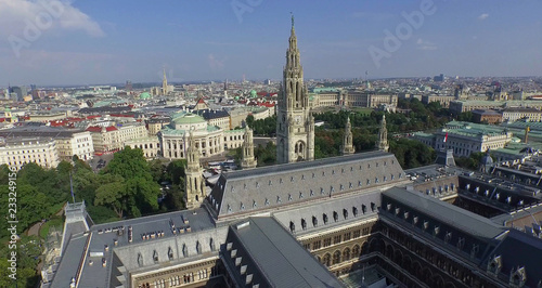Naklejka premium Rathaus Vienna - Town Hall. Rathauspark. Aerial View.