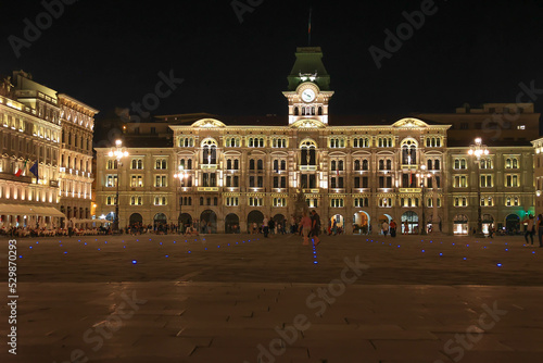 © Harald Florian, Fototapeta premium Rathaus von Triest bei Nacht