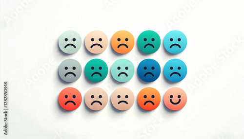 © Warittha, Naklejka premium Rating A modern, minimalistic design of 10 color-coded circular faces, with expressions ranging from very d3