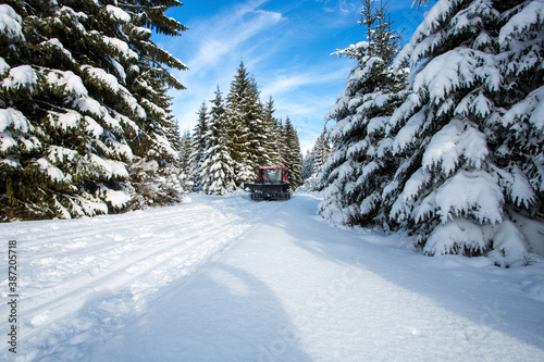 © Arkadiusz, Obraz premium Ratrak na trasie narciarskiej