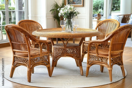 © OnuTH, Obraz premium Rattan Dining Set with Flowers