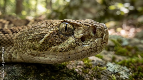© MetaVision Gallery, Fototapeta premium Rattlesnake Head Close-up in Forest