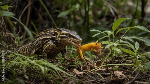 © KeeriwalaGamage, Obraz premium Rattlesnake in Motion Pygmy Rattlesnake Slithering Through Tall Grass with Visible Rattle