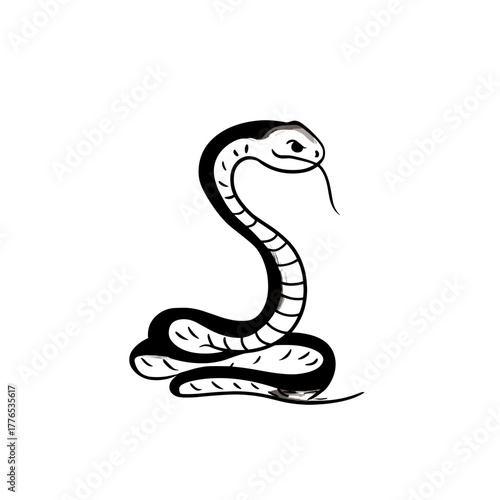 © Aquir, Fototapeta premium Rattlesnake. Rattlesnake simple black and white line art vector logo