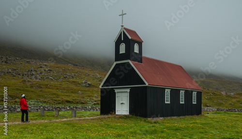 © forcdan, Fototapeta premium Raudasandur church, Iceland