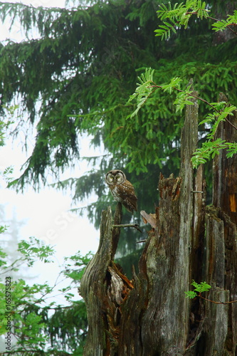 Fototapeta premium Raufußkauz auf einen Baumstumpf