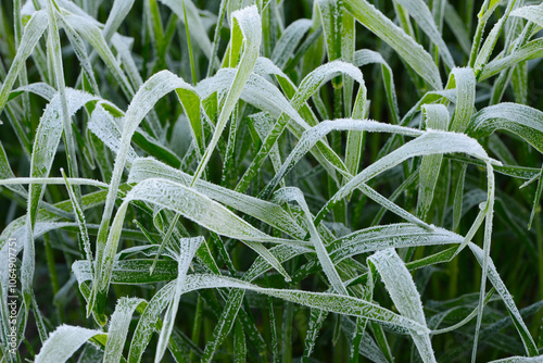© Peter Oetelshofen, Obraz premium Raureif, Getreideblätter