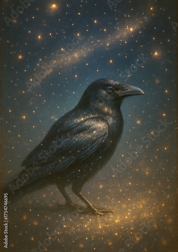 © Rawpixel.com, Fototapeta premium Raven amidst cosmic stars