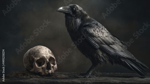 © Sakdecha, Fototapeta premium Raven and Skull Still Life