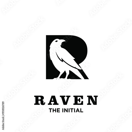 © Alpha Factory Std, Fototapeta premium Raven Bird and Letter R Initial Logo Design Template
