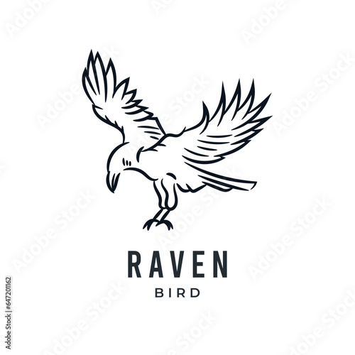Fototapeta premium Raven bird or eagle line art hand drawn logo icon vector illustration
